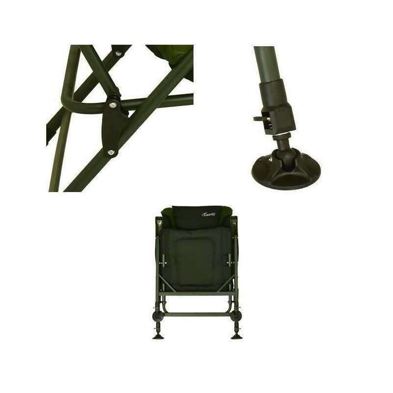 Komfortabler Level Chair mit verstellbarer Rückenlehne und Armlehnen. Robuste Konstruktion, ideal für lange Angelsessions.