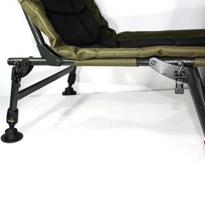 Stabiler Angelstuhl mit RS-System, bequemer Polsterung und verstellbaren Beinen – ideal für längere Sessions mit Komfort und sicherem Halt.