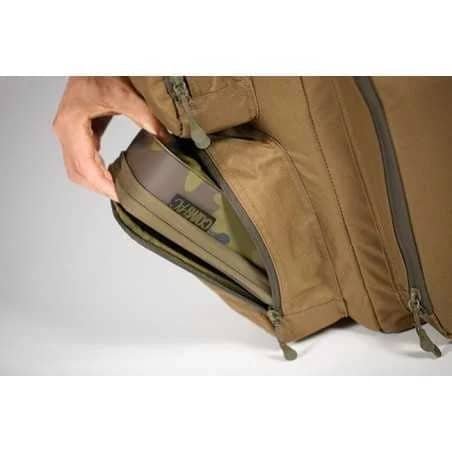 Die Vordertasche bietet Platz für eine Korda Tackle Box, wodurch der Stauraum im Hauptfach optimal genutzt werden kann.