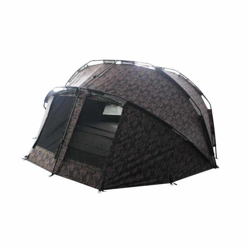 3-Mann-Karpfenzelt aus Ripstop-Gewebe mit Camouflage-Design. Wetterfest, geräumig, robust – ideal für lange Sessions beim Karpfenangeln.