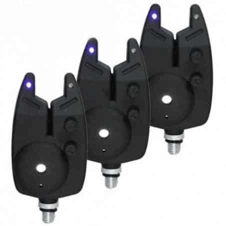 Zuverlässiges 3er-Bissanzeiger-Set mit blauer LED und Lautstärkeregelung. Perfekt für Einsteiger beim Karpfenangeln bei Tag und Nacht.
