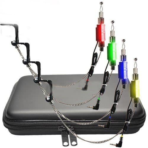 Das professionelle Funk Bissanzeiger Set für Karpfenangeln besteht aus einem kompletten elektronischen Angelzubehör-System mit 4 digitalen Bissanzeigern, einer Empfängerzentrale und 4 beleuchteten Swingern. Die fortschrittliche digitale Technologie garantiert eine zuverlässige Übertragung bis zu 150 Meter unter allen Bedingungen.