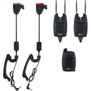 Professionelles Funk-Bissanzeiger Set für anspruchsvolles Karpfenangeln. Das System besteht aus 2 Bissanzeigern und einer Funkzentrale mit modernster Technologie.