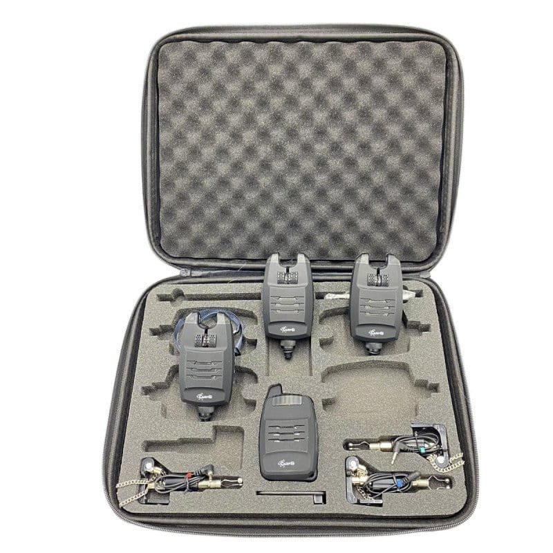 Hochwertiges Bissanzeiger-Set für anspruchsvolles Karpfenangeln. Das komplette Set besteht aus drei digitalen Bissanzeigern, einer Funkzentrale und drei LED-Swingern.