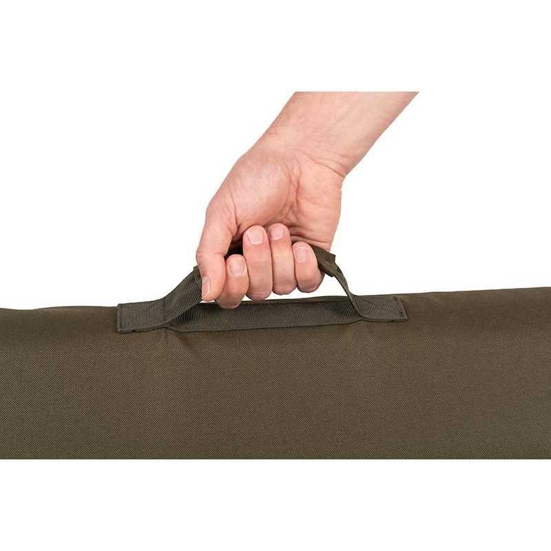 Die gummierte Scharnierabdeckung schützt sowohl das Scharnier als auch die Oberfläche, auf der das Bedchair platziert wird. Zudem sorgt sie dafür, dass das Bedchair beim Verstauen stabil bleibt.