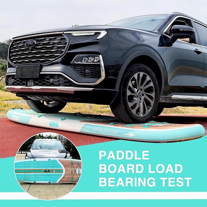 Stabiles SUP mit 335x86x15 cm, 227 kg Tragkraft, rutschfeste Oberfläche, Doppelkammer-Design, Zubehör: Pumpe, Rucksack, Paddel & mehr.