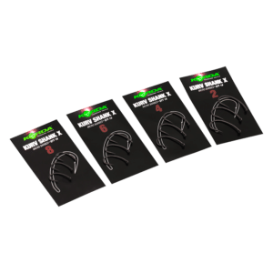 Extra starke Kurv Shank X Haken für große Karpfen. Scharfe Spitze, Widerhaken, starke Drahtstärke – ideal für harte Gewässer und Hindernisse.