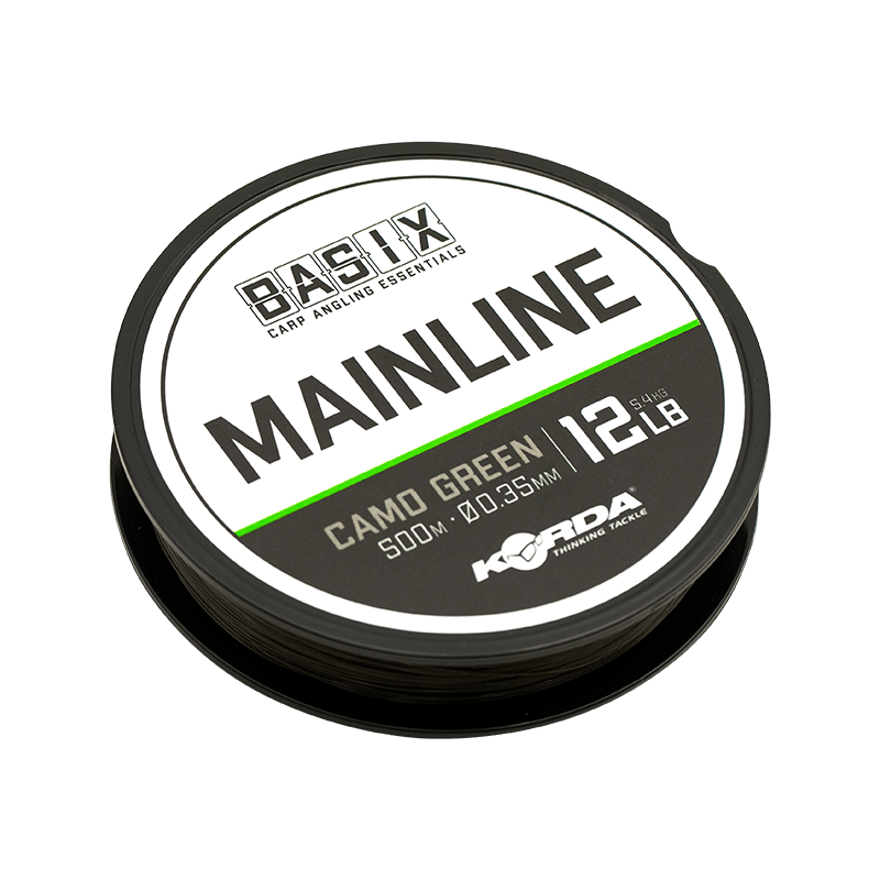 Hochwertige Nylon-Hauptlinie von Korda Basix, 500m Länge, 0.35mm / 0.40mm Durchmesser. Ideal für Karpfenfischerei, robust, widerstandsfähig und langlebig.